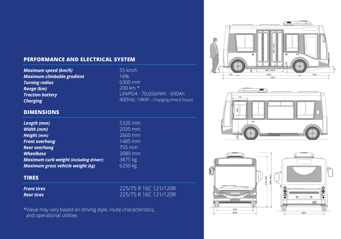 In just 5.32 meters in length, it can accommodate up to a maximum of 30 passengers in addition to the driver, who has plenty of space and a dedicated door. It is unique in the world with these features.